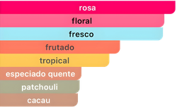 Notas de Coração são: Peônia, Rosa Turca e Cacau.
