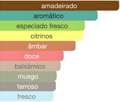 Notas de Topo são: Laranja, Bergamota, Mandarina e Limão.