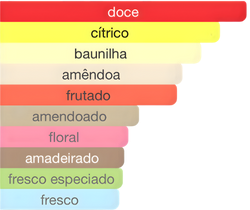 Notas de Topo são: Amêndoa Verde, Lima, Pera e Capim-Limão.