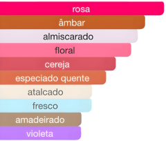 Notas de Topo são: Cereja Preta, Açafrão e Pimenta Rosa.