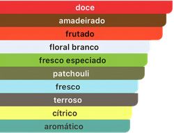 Notas de Fundo são: Gengibre, Patchouli, Vetiver, Âmbar Cinzento, Fava Tonka e Baunilha.