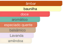Notas de Fundo são: Fava Tonka, Baunilha e Amêndoa.