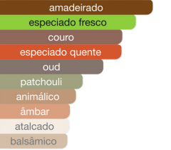 Notas de Fundo são: Couro, Agarwood (Oud), Cedro e Ládano.