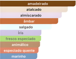 Notas de Topo são: Sal, Pimenta Preta, Pimenta Branca e Pimenta Rosa.